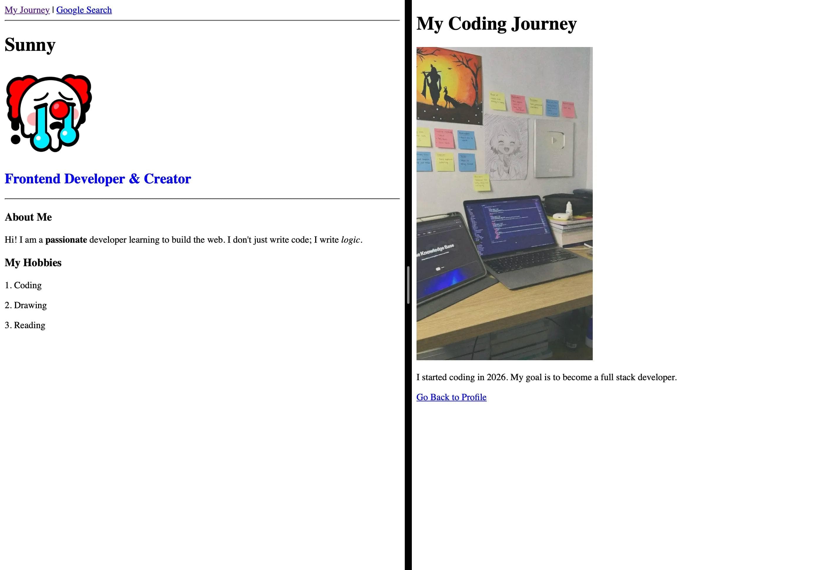 I started coding in 2026. My goal is to become a full stack developer.