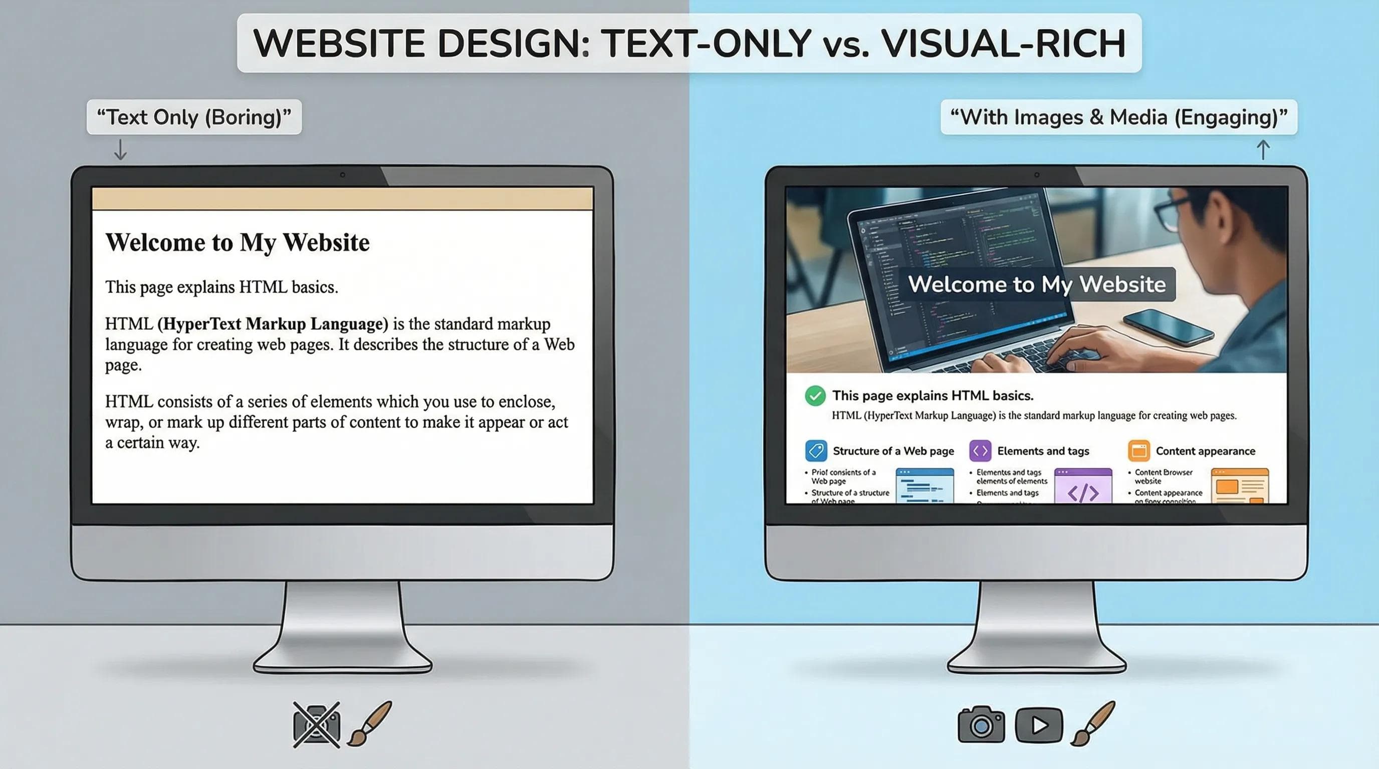 - Google is Blind: Search engines cannot "see" pixels. They read the