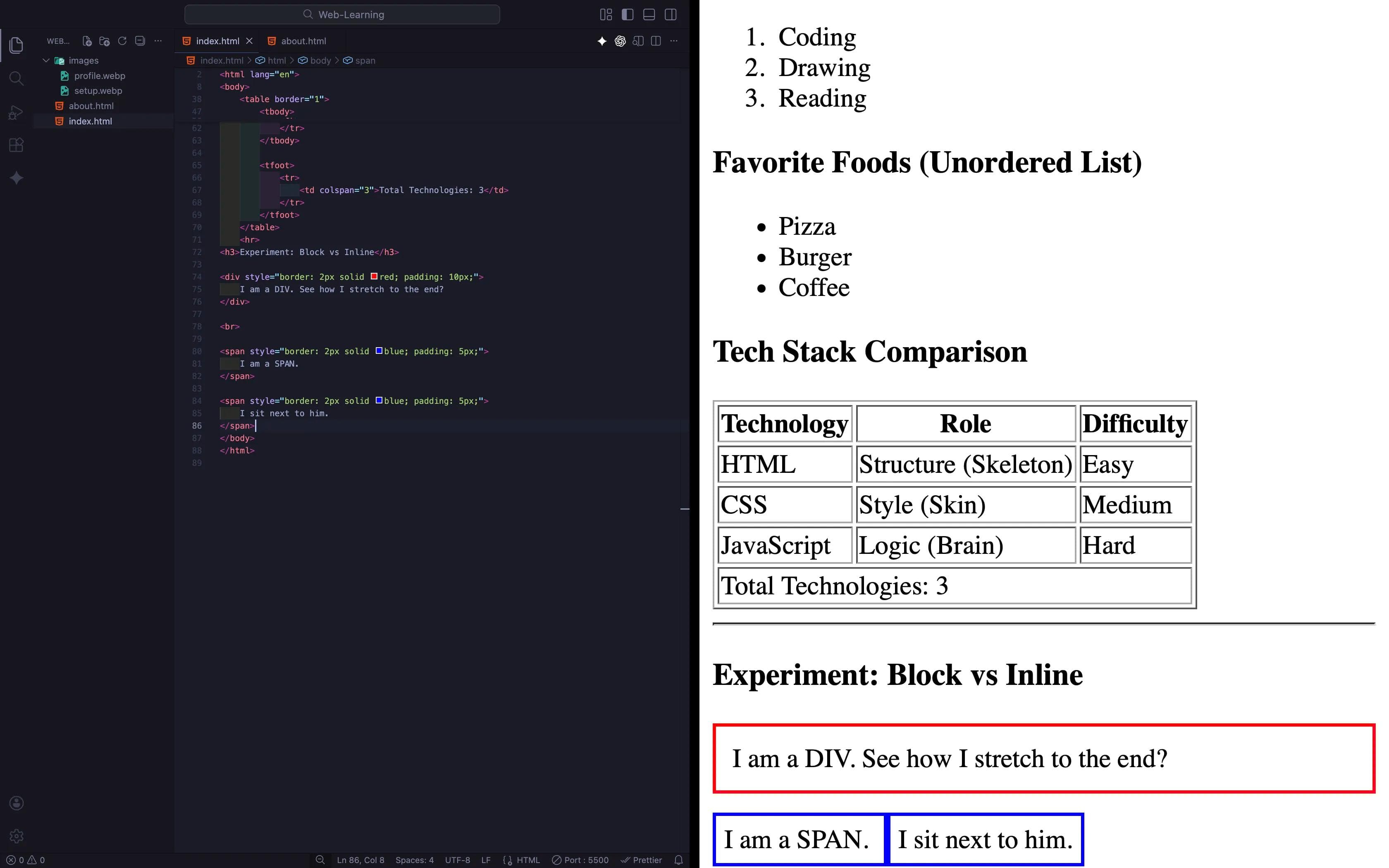 In the next blog post, we will start building HTML Forms. We will learn about the Input tag, the importance of Labels, and how to create a Login structure.