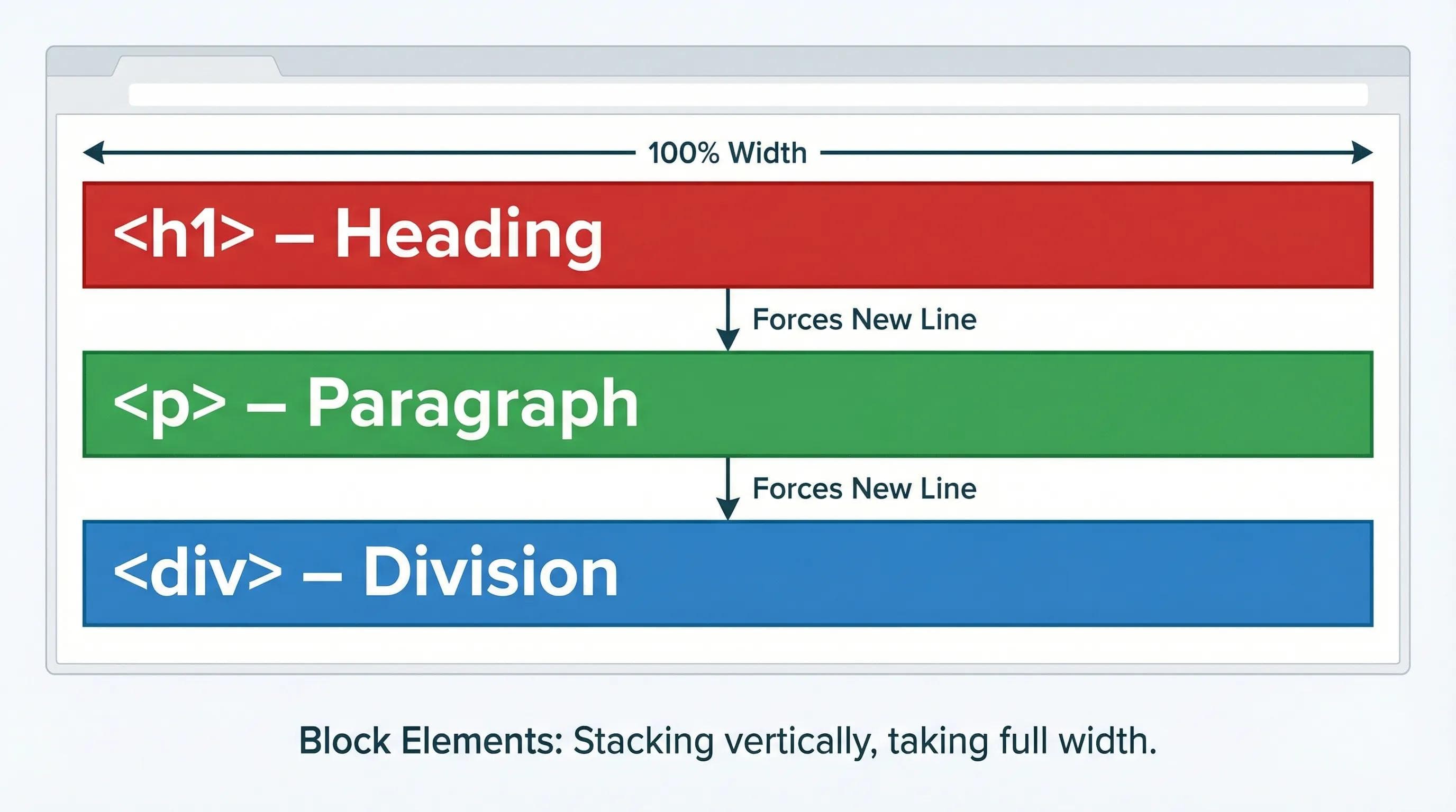 These elements are "Greedy." Even if they have very little text, they claim the Full Width of the screen.