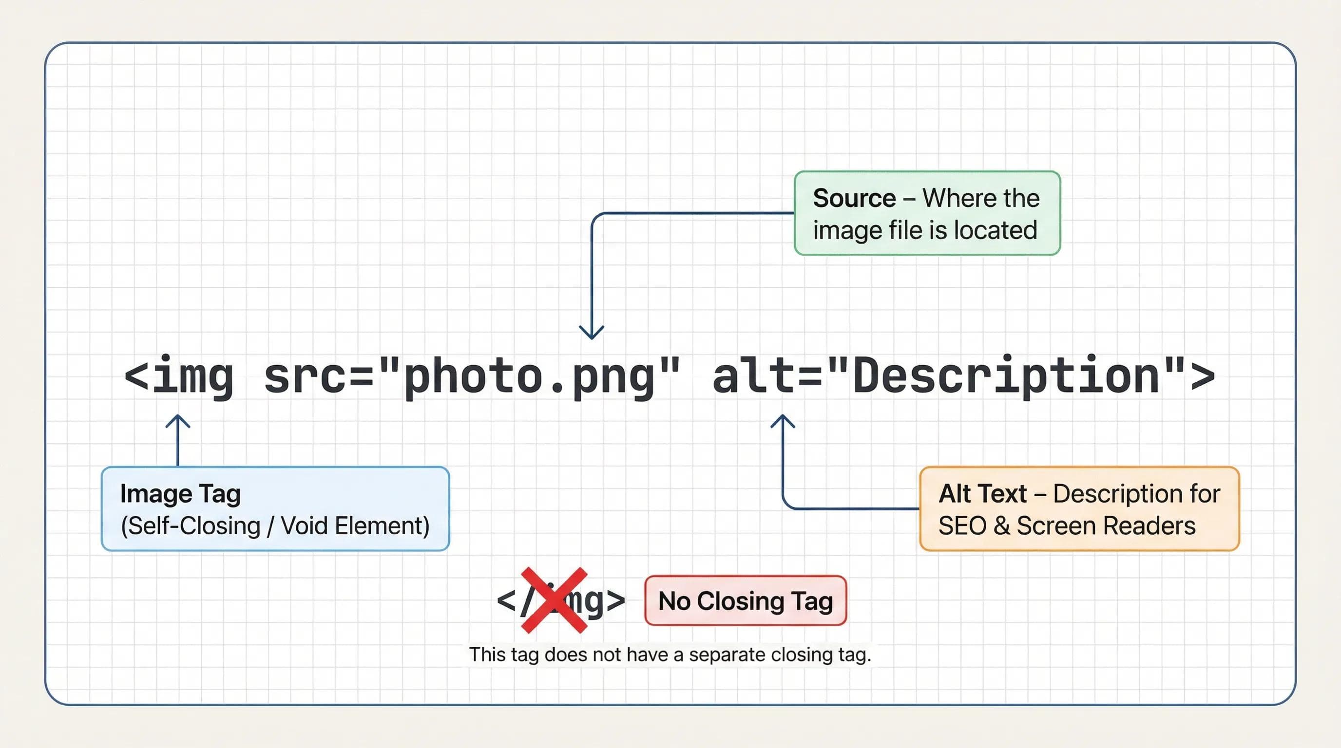 <img src="images/x.png">The Most Important Attribute: Alt Text (alt)