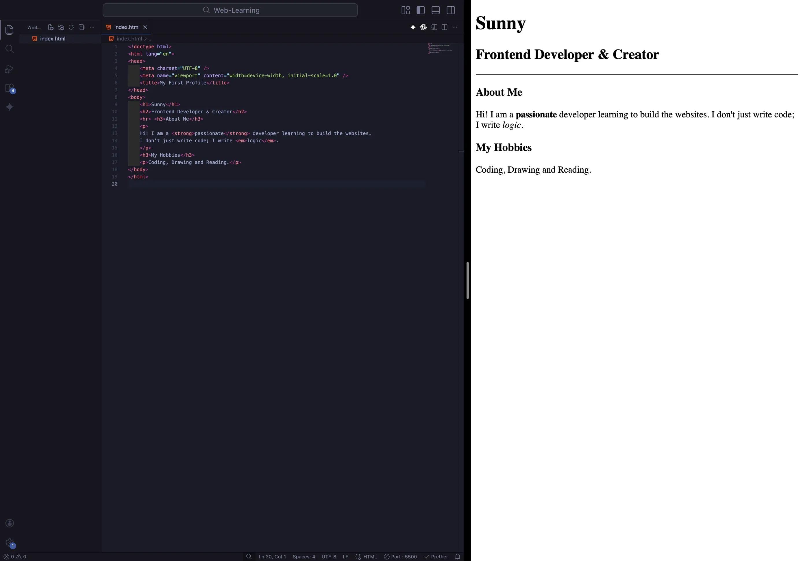 Don't just copy-paste this! Go ahead and play with the code. Try making different words <strong>, change the <h2> to an <h3>, or add a completely new paragraph about your favorite food. The best way to master these concepts is to break things and see what happens!